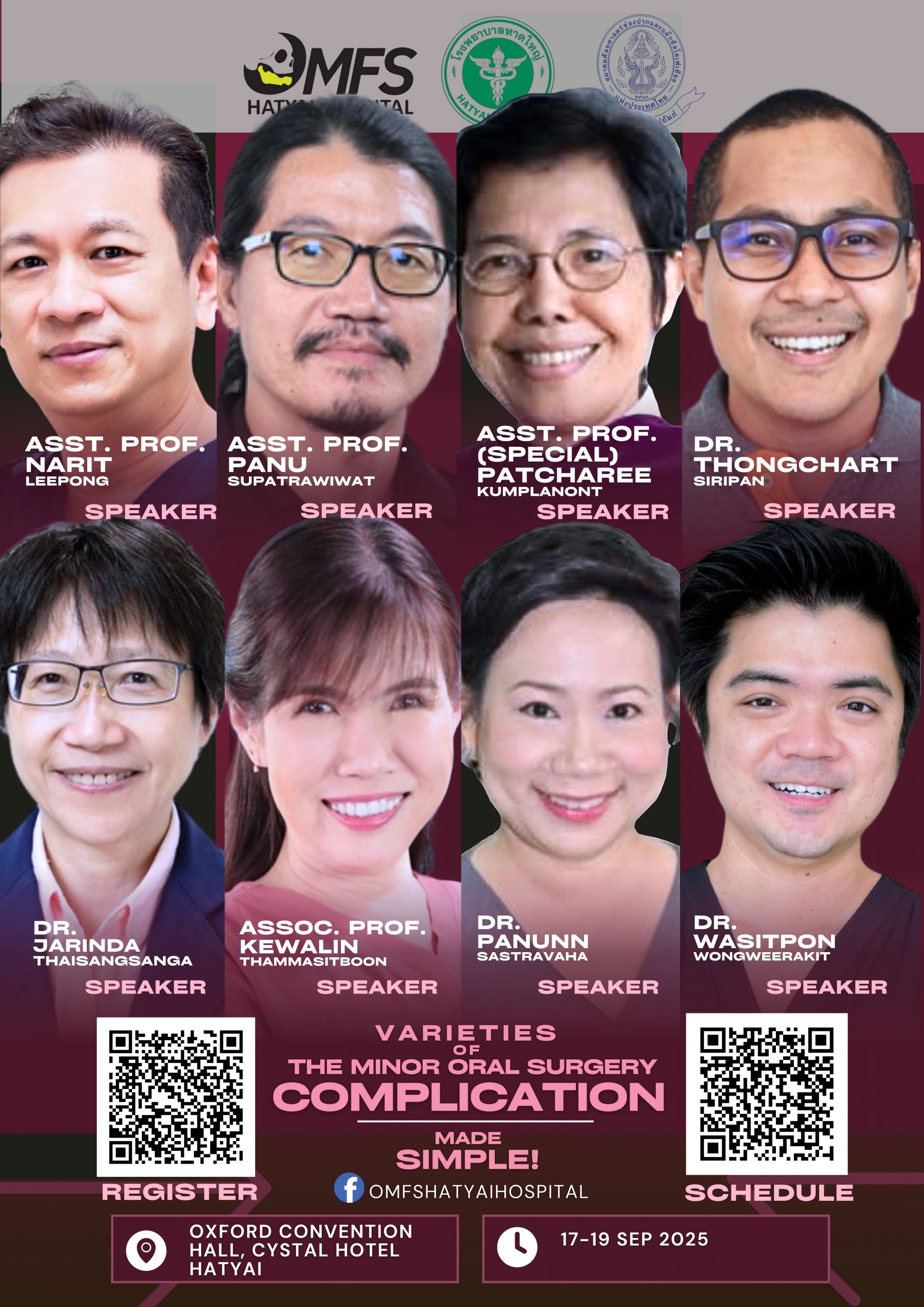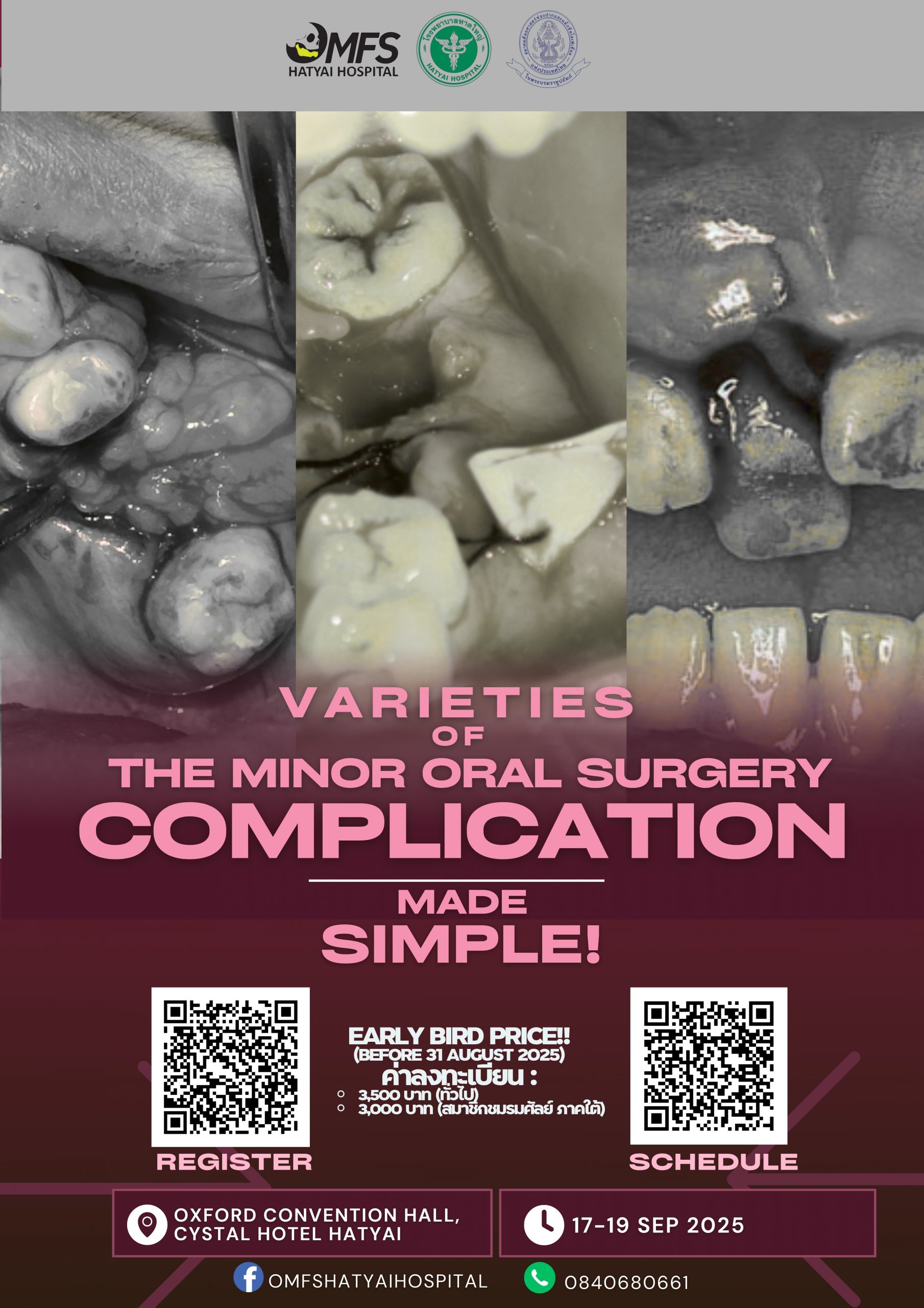 คณะทันตแพทยศาสตร์ ม.อ. ขอเชิญทันตแพทย์ ศิษย์เก่าและผู้ที่สนใจเข้าร่วมการประชุมวิชาการ ในเรื่อง Varieties of the minor oral surgery complication made simple และร่วมแสดงมุทิตาจิต เนื่องในโอกาสเกษียณอายุราชการของ ทพ.สุรชัย อภินวถาวรกุล และ ผศ.ทพญ.มะลิ นิยมบัณฑิต ![]()