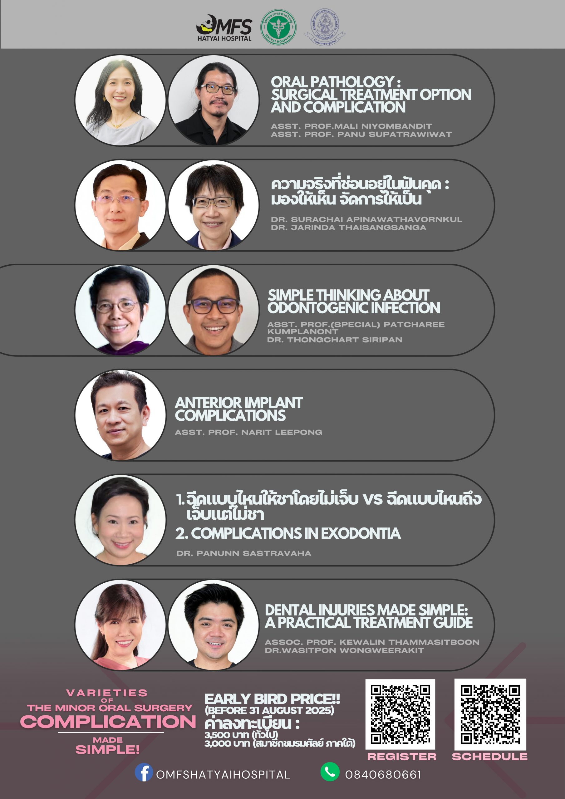 สำหรับท่านใดที่สนใจสามารถแสกน QR code เพื่อลงทะเบียนและอ่านรายละเอียดเพิ่มเติมในหัวข้อบรรยายต่างๆ หากมีข้อสงสัยสามารถติดต่อได้ที่ 084-0680661