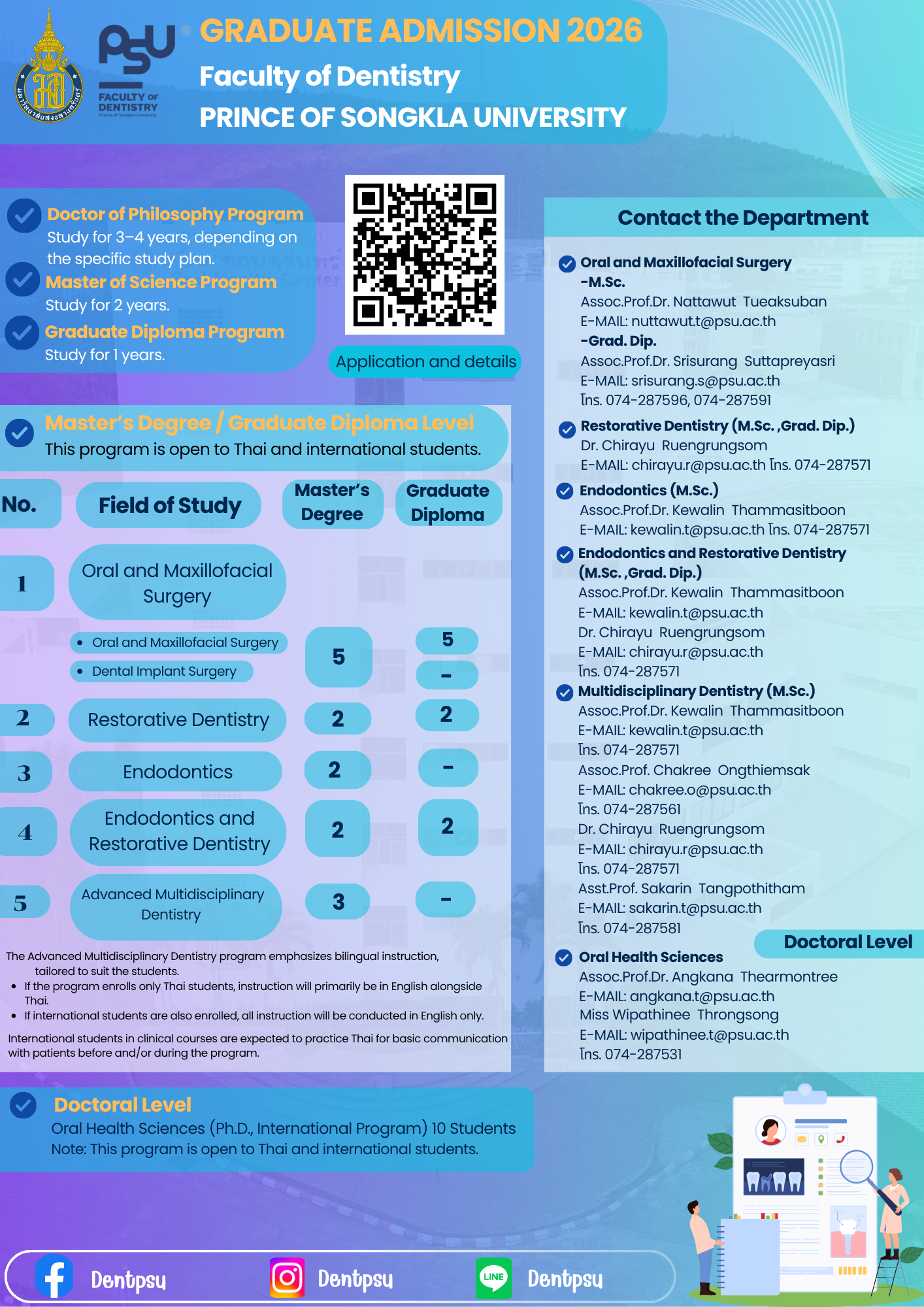 - สาขาวิทยาศาสตร์สุขภาพช่องปาก (หลักสูตรนานาชาติ) (ป.เอก)
