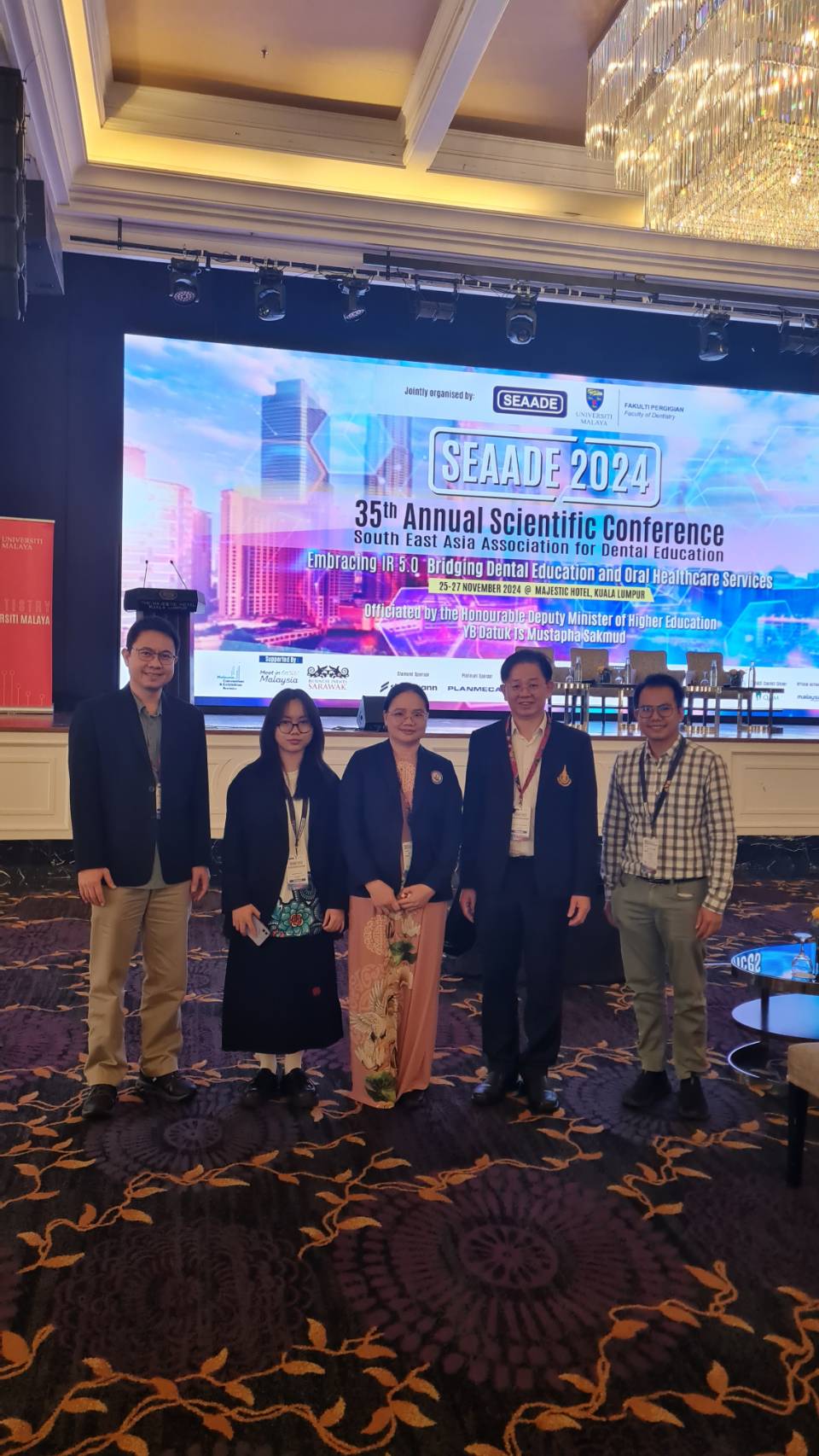 The Faculty of Dentistry, Prince of Songkla University, led by Assoc. Prof. Dr. Songchai Thitasomakul, the Dean, Assoc.Prof.Chakree Ongthiemsak, Vice Dean for Academic and International Relations, and Dr. Chirayu Ruengrungsom, Assistant Dean for Postgraduate and International Relations participated in the 35th Annual Scientific Conference South East Asia Association for Dental Education ( SEAADE 2024), which was held in Kuala Lumpur, Malaysia from November 25 – 27, 2024.