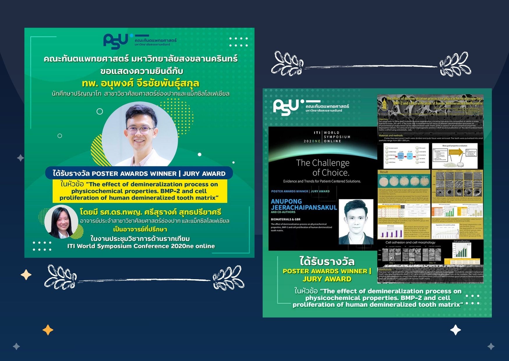 สาขาวิชาศัลยศาสตร์ช่องปากและแม็กซิลโลเฟเชียล คณะทันตแพทยศาสตร์ ขอแสดงความยินดีกับนักศึกษา และอาจารย์ที่ปรึกษา ที่คว้ารางวัลในผลงานการวิจัย