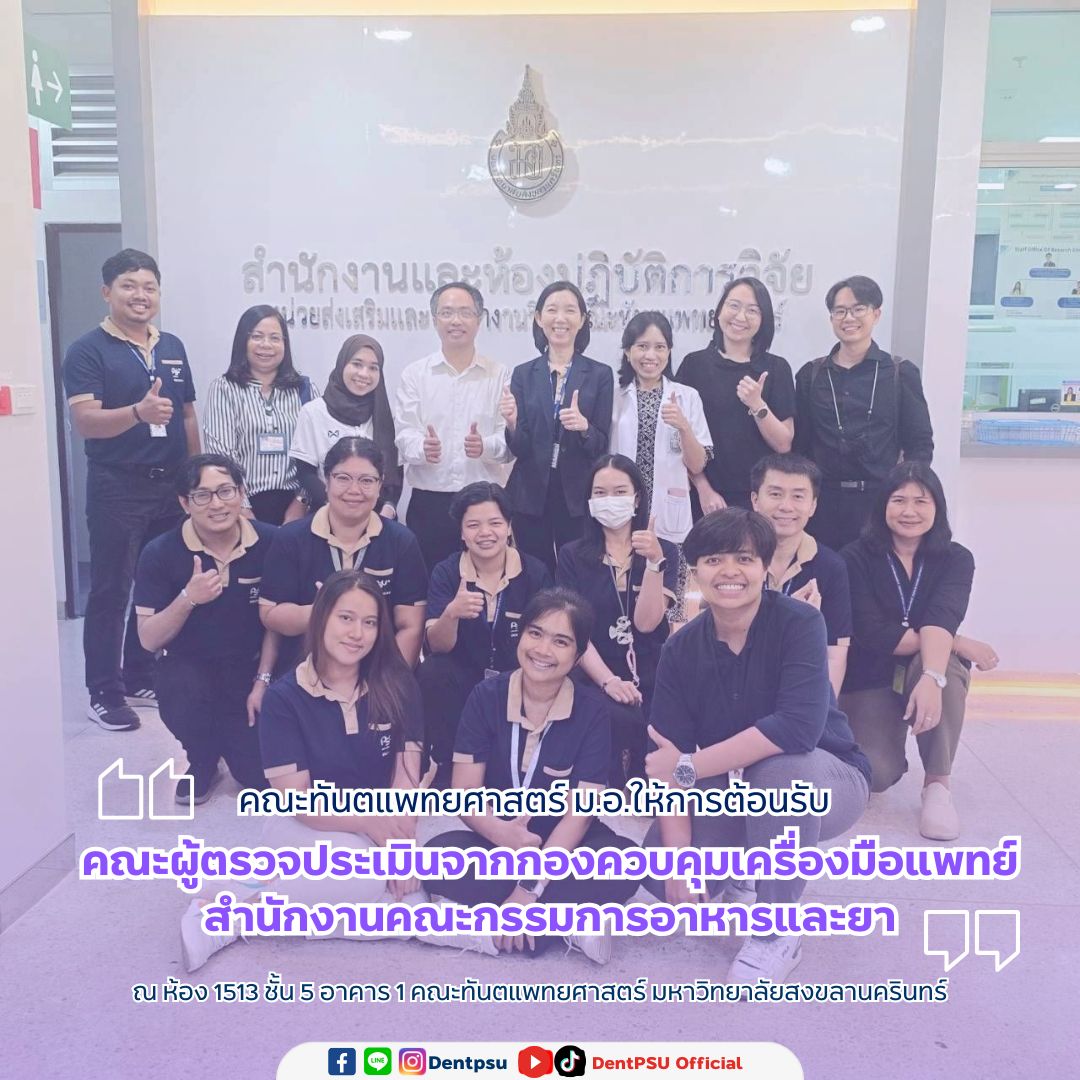เมื่อวันที่ 12 กุมภาพันธ์ 2569 ที่ผ่านมา คณะทันตแพทยศาสตร์ มหาวิทยาลัยสงขลานครินทร์ ได้ให้การต้อนรับคณะผู้ตรวจประเมินจาก กองควบคุมเครื่องมือแพทย์ สำนักงานคณะกรรมการอาหารและยา (อย.) ในโอกาสลงพื้นที่เข้าตรวจประเมินเพื่อจดทะเบียนสถานประกอบการเครื่องมือแพทย์ ณ ห้อง 1513 ชั้น 5 อาคาร 1 คณะทันตแพทยศาสตร์